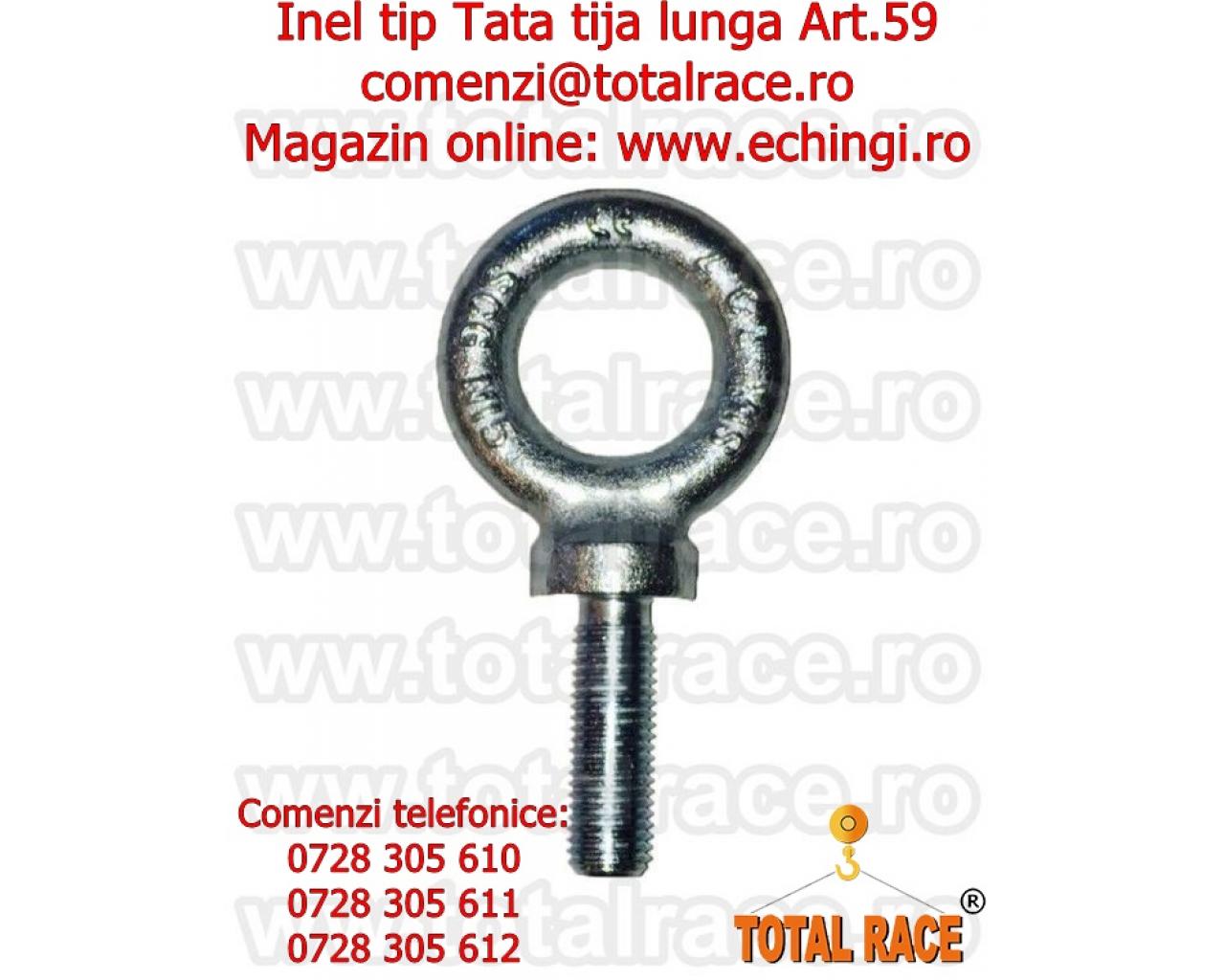 Total Race livreaza din stoc Bucuresti : inele ridicare tip tata cu tija lunga , inele de ridicare cu filet exterior si tija lunga, ocheti de ridicare cu ureche si tija filetata lunga, surub cu ureche tija lunga – Art.59 , inel cu surub tija lunga french type , inel ridicare din otel zincat pentru deplasarea greutatilor , ochet insurubabil tija lunga , inele ridicare insurubabile tija lunga, inele tija lunga dimensiuni M6 – M33. Inele tip tata cu tija filetata lunga sunt realizate din material otel FE 430 B - C15 ( galvanizat ).Pentru preturi, date tehnice si disponibilitate stoc accesati magazinul online : [link ascuns]